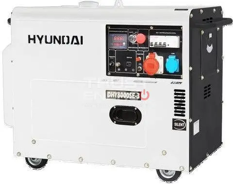 Дизельный генератор Hyundai DHY 8000SE-3 с АВР номинальной мощностью 6 кВт с двигателем Hyundai - отличный электроагрегат демонстрирующий уверенный приём нагрузки как резервный источник питания, так и основной.